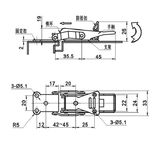 結構功能:翻蓋式搭扣;翻蓋通過按扭固定; 內置鎖緊彈簧;